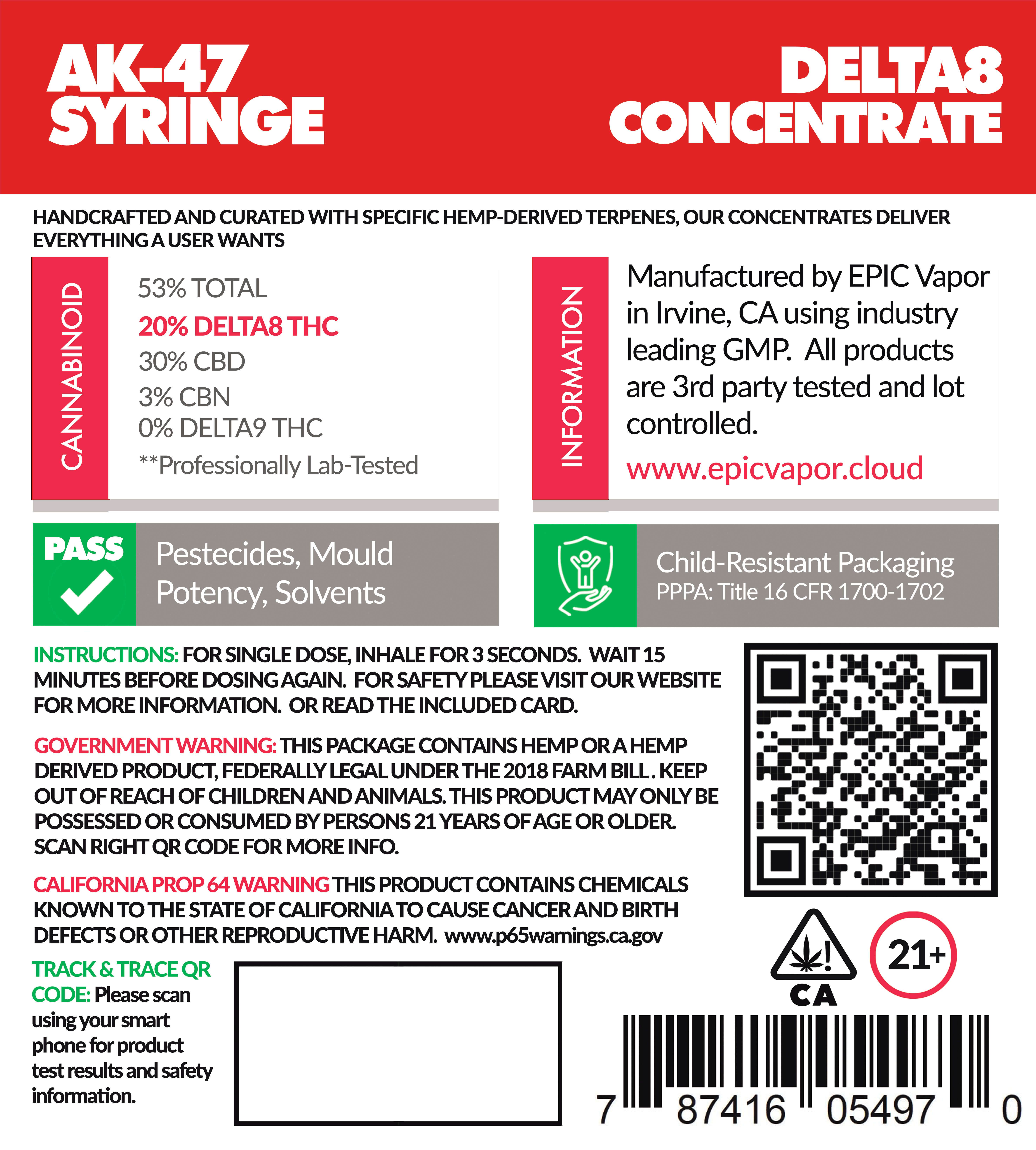 Our concentrates are made from the purest full spectrum distillate. These powerfully relaxing concentrates are made with 500 mg of concentrated THC. This means for every 1 mL of oil, you’re getting just over 15 mg of pure THC. Very well packaged to maintain freshness. Which further serves as a child proof package with California state compliance labelling. You can be certain that when you buy an EPIC tincture, you are getting the absolute best product available in the world. We take tremendous pride in says as much. After all our brand is EPIC, which means the tincture has to be EPIC.