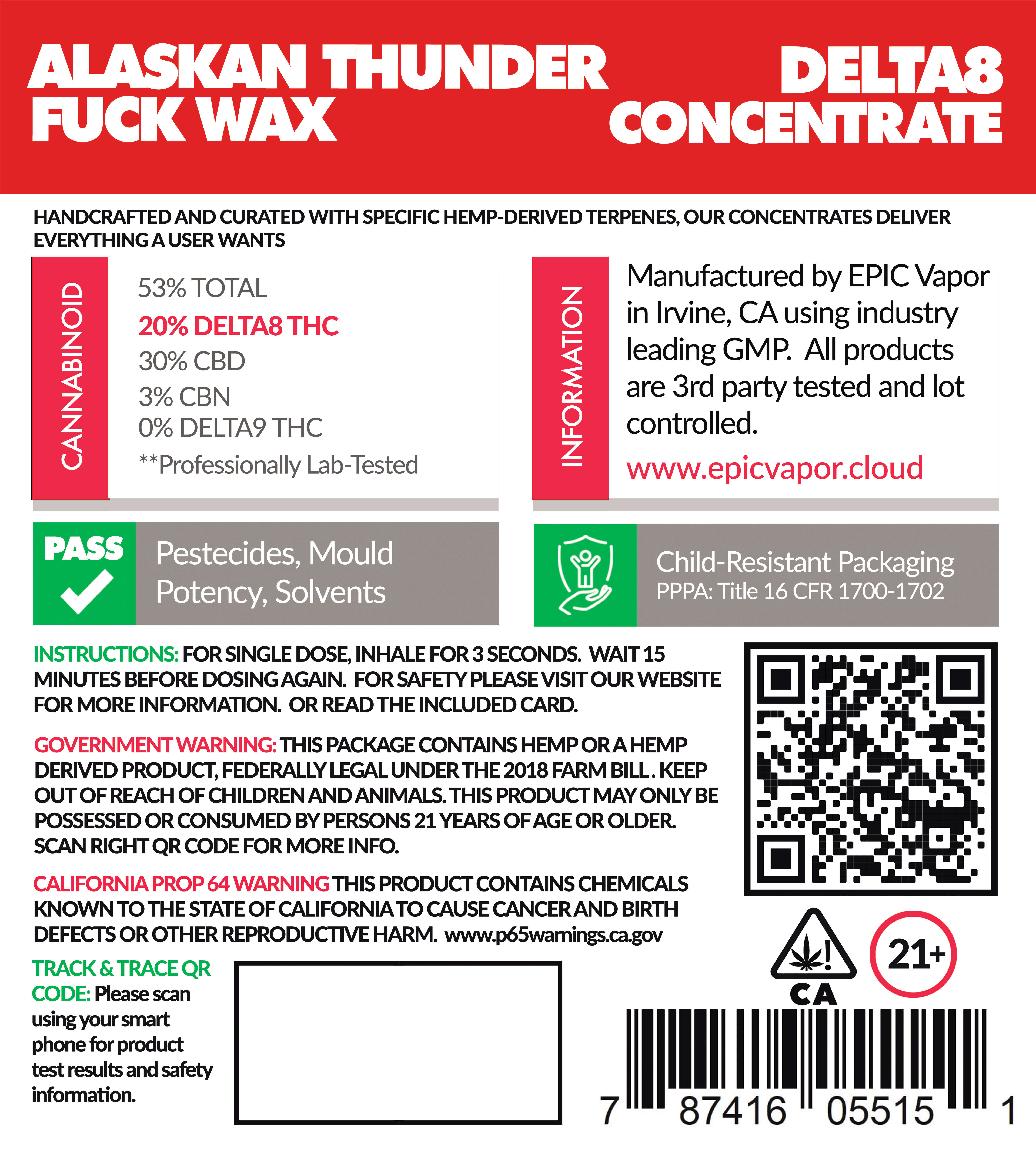 Our concentrates are made from the purest full spectrum distillate. These powerfully relaxing concentrates are made with 500 mg of concentrated THC. This means for every 1 mL of oil, you’re getting just over 15 mg of pure THC. Very well packaged to maintain freshness. Which further serves as a child proof package with California state compliance labelling. You can be certain that when you buy an EPIC tincture, you are getting the absolute best product available in the world. We take tremendous pride in says as much. After all our brand is EPIC, which means the tincture has to be EPIC.