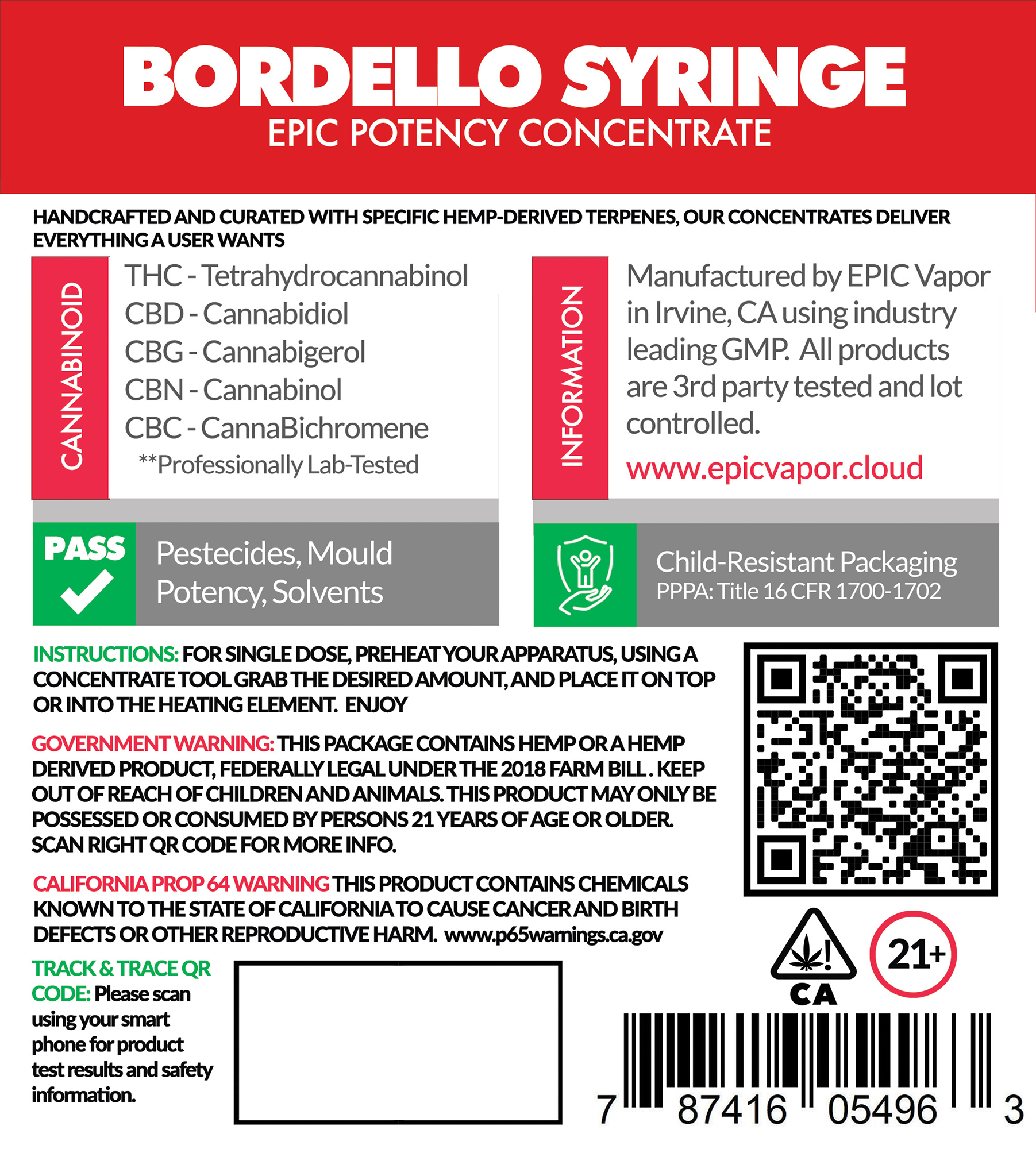 Our concentrates are made from the purest full spectrum distillate. These powerfully relaxing concentrates are made with 500 mg of concentrated THC. This means for every 1 mL of oil, you’re getting just over 15 mg of pure THC. Very well packaged to maintain freshness. Which further serves as a child proof package with California state compliance labelling. You can be certain that when you buy an EPIC tincture, you are getting the absolute best product available in the world. We take tremendous pride in says as much. After all our brand is EPIC, which means the tincture has to be EPIC.
