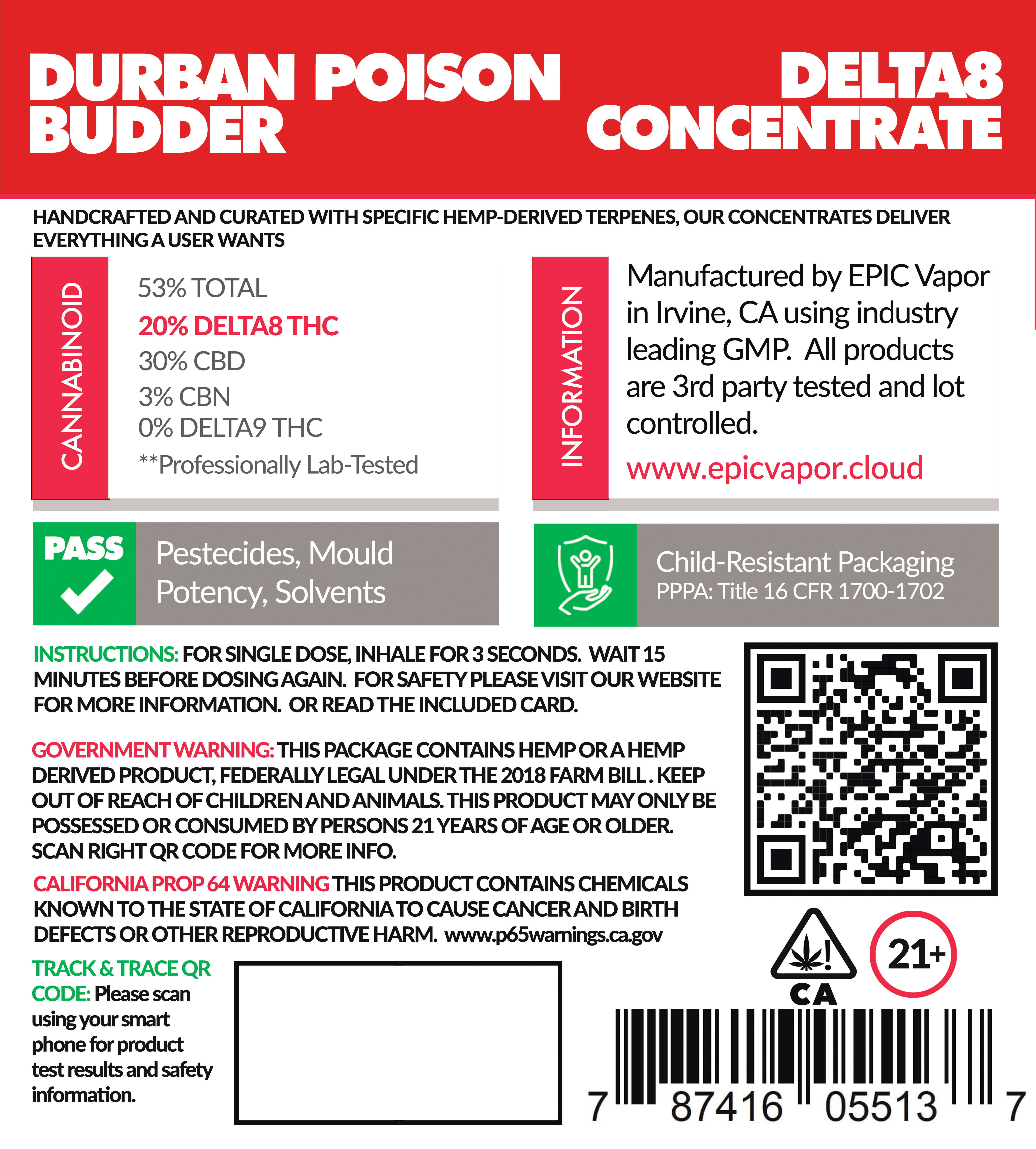 Our concentrates are made from the purest full spectrum distillate. These powerfully relaxing concentrates are made with 500 mg of concentrated THC. This means for every 1 mL of oil, you’re getting just over 15 mg of pure THC. Very well packaged to maintain freshness. Which further serves as a child proof package with California state compliance labelling. You can be certain that when you buy an EPIC tincture, you are getting the absolute best product available in the world. We take tremendous pride in says as much. After all our brand is EPIC, which means the tincture has to be EPIC.