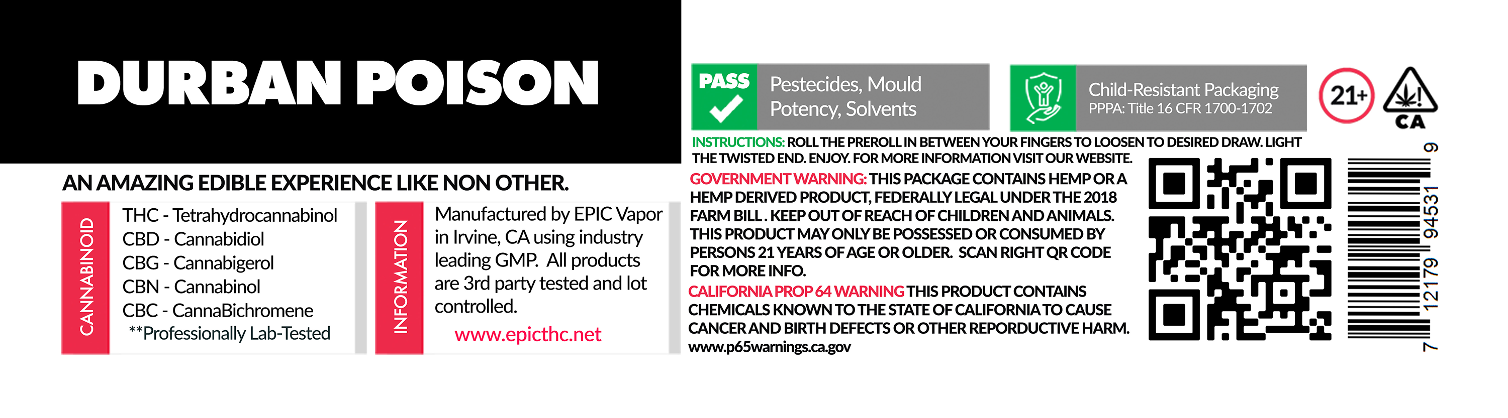 Our preroll is made through a multi-step infusion process. Step one is to select premium flowers. Once these are selected, it is time to coat them with infused distillate oil. This process often involves multiple coats on the flower to increase psychoactivity and provide an overall frostier look. Packaged to maintain freshness using an 8 layer patented pouch package with a ziplock mechanism. Which further serves as a child proof package with California state compliance labelling. You can be certain that when you buy an EPIC preroll, you are getting the absolute best product available in the world. We take tremendous pride in says as much. After all our brand is EPIC, which means the flower has to be EPIC.