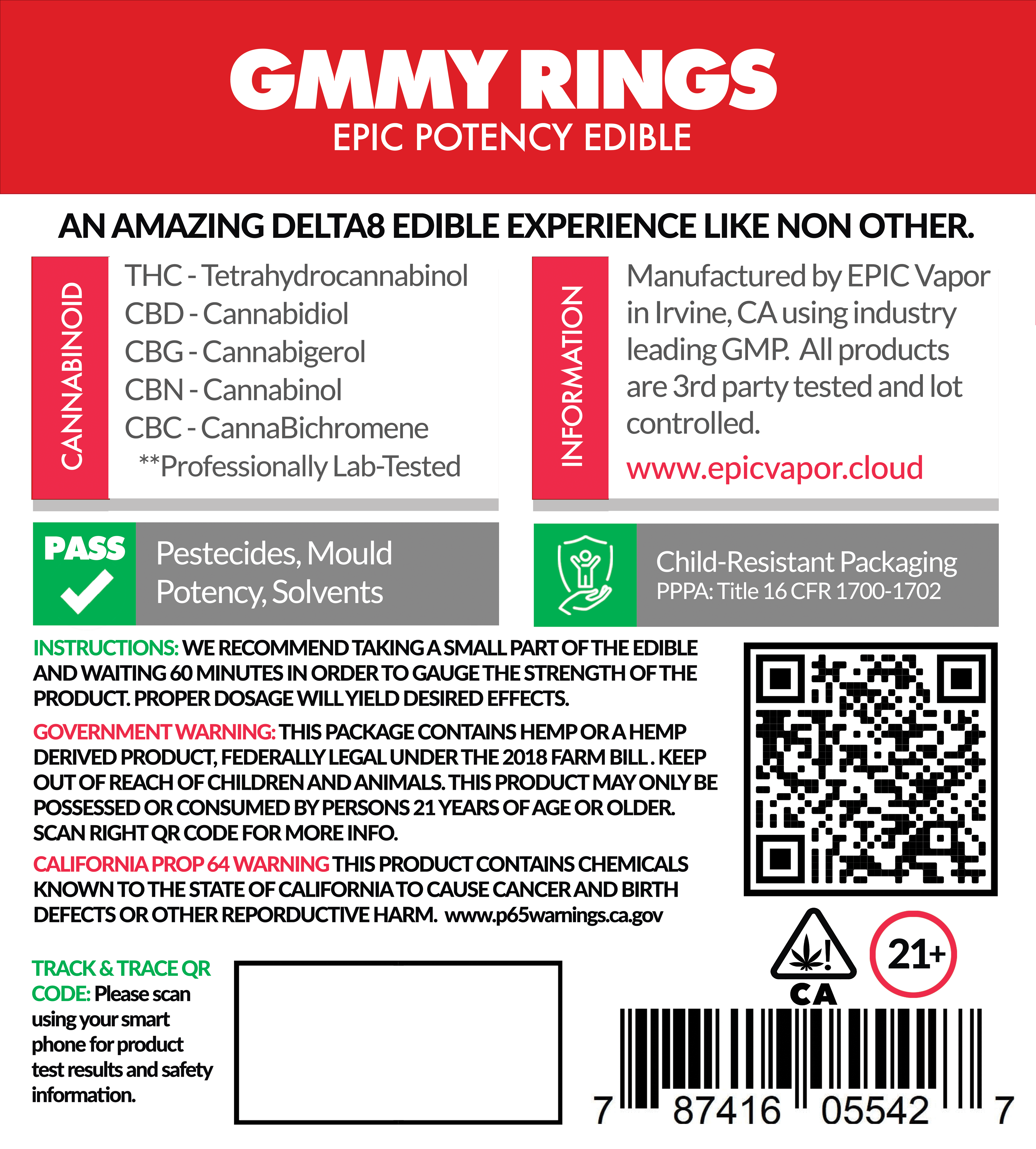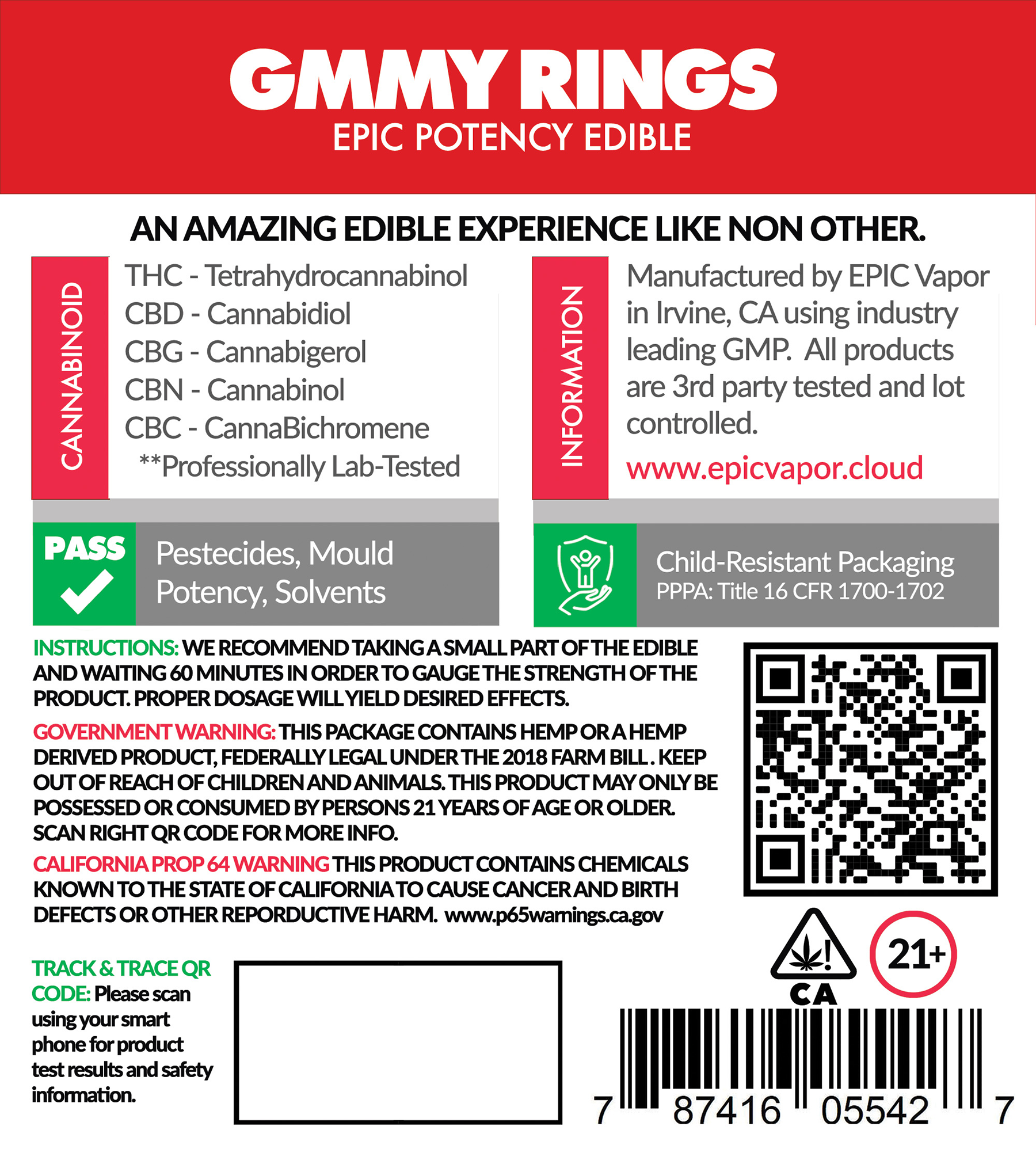Our edibles are made from the purest full spectrum distillate. Crafted in a sterile commerical kitchen and made under GMP requirements for food products. Packaged to maintain freshness using an 8 layer patented pouch package with a ziplock mechanism. Which further serves as a child proof package with California state compliance labelling. You can be certain that when you buy an EPIC edible, you are getting the absolute best product available in the world. We take tremendous pride in says as much. After all our brand is EPIC, which means the edible has to be EPIC.