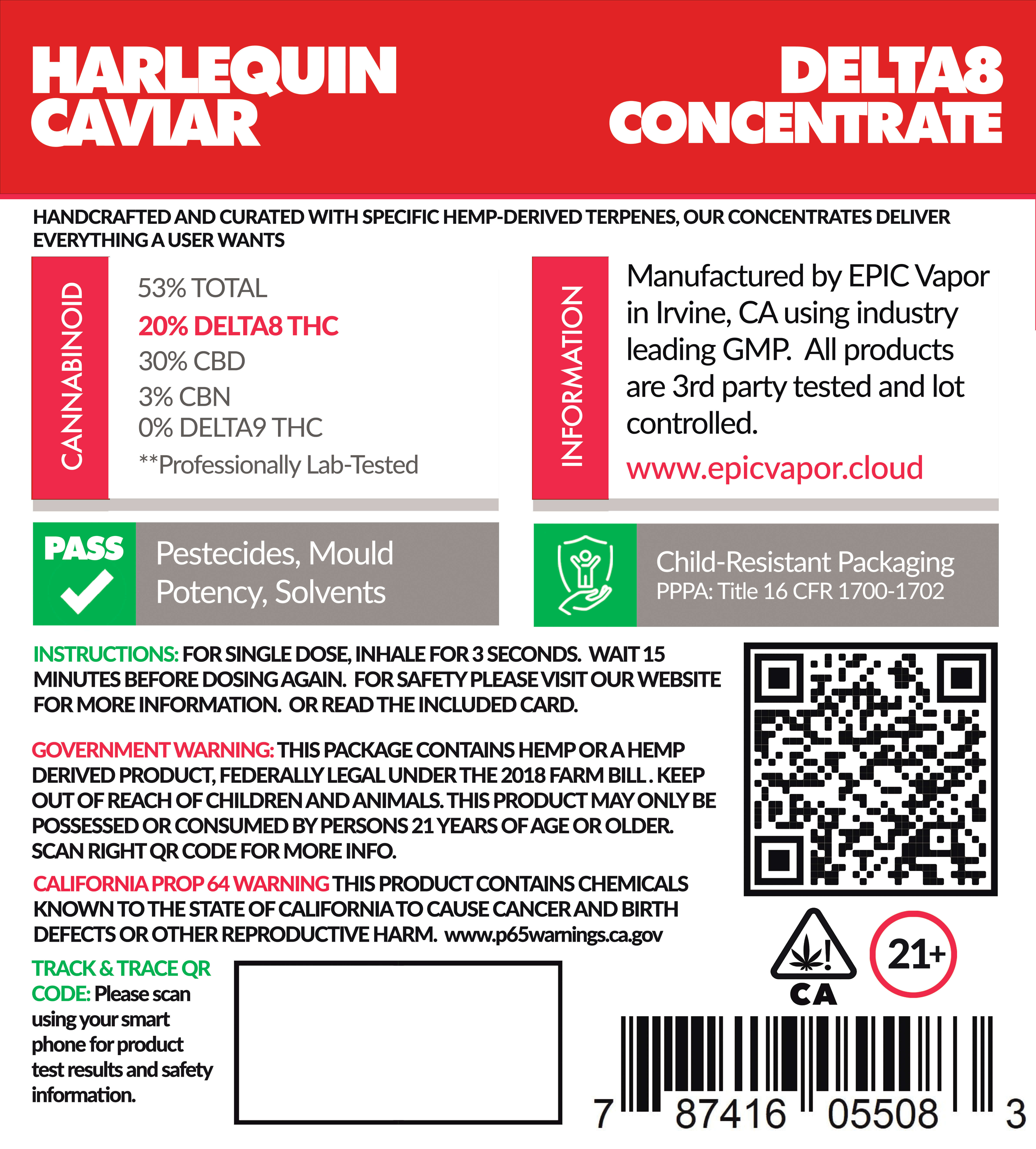 Our concentrates are made from the purest full spectrum distillate. These powerfully relaxing concentrates are made with 500 mg of concentrated THC. This means for every 1 mL of oil, you’re getting just over 15 mg of pure THC. Very well packaged to maintain freshness. Which further serves as a child proof package with California state compliance labelling. You can be certain that when you buy an EPIC tincture, you are getting the absolute best product available in the world. We take tremendous pride in says as much. After all our brand is EPIC, which means the tincture has to be EPIC.