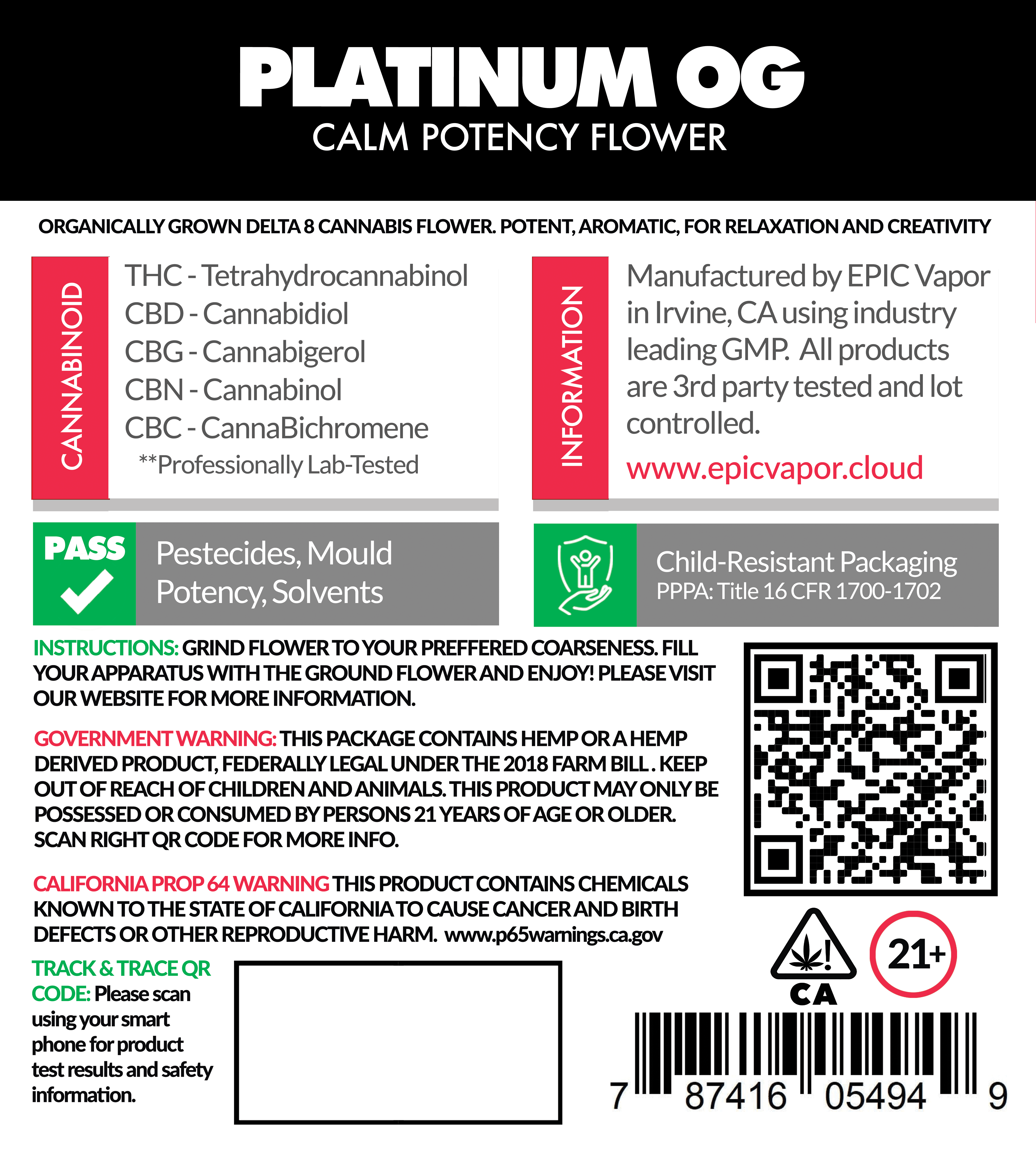 Our flower is made through a multi-step infusion process. Step one is to select premium flowers. Once these are selected, it is time to coat them with infused distillate oil. This process often involves multiple coats on the flower to increase psychoactivity and provide an overall frostier look. Packaged to maintain freshness using an 8 layer patented pouch package with a ziplock mechanism. Which further serves as a child proof package with California state compliance labelling. You can be certain that when you buy an EPIC flower, you are getting the absolute best product available in the world. We take tremendous pride in says as much. After all our brand is EPIC, which means the flower has to be EPIC.