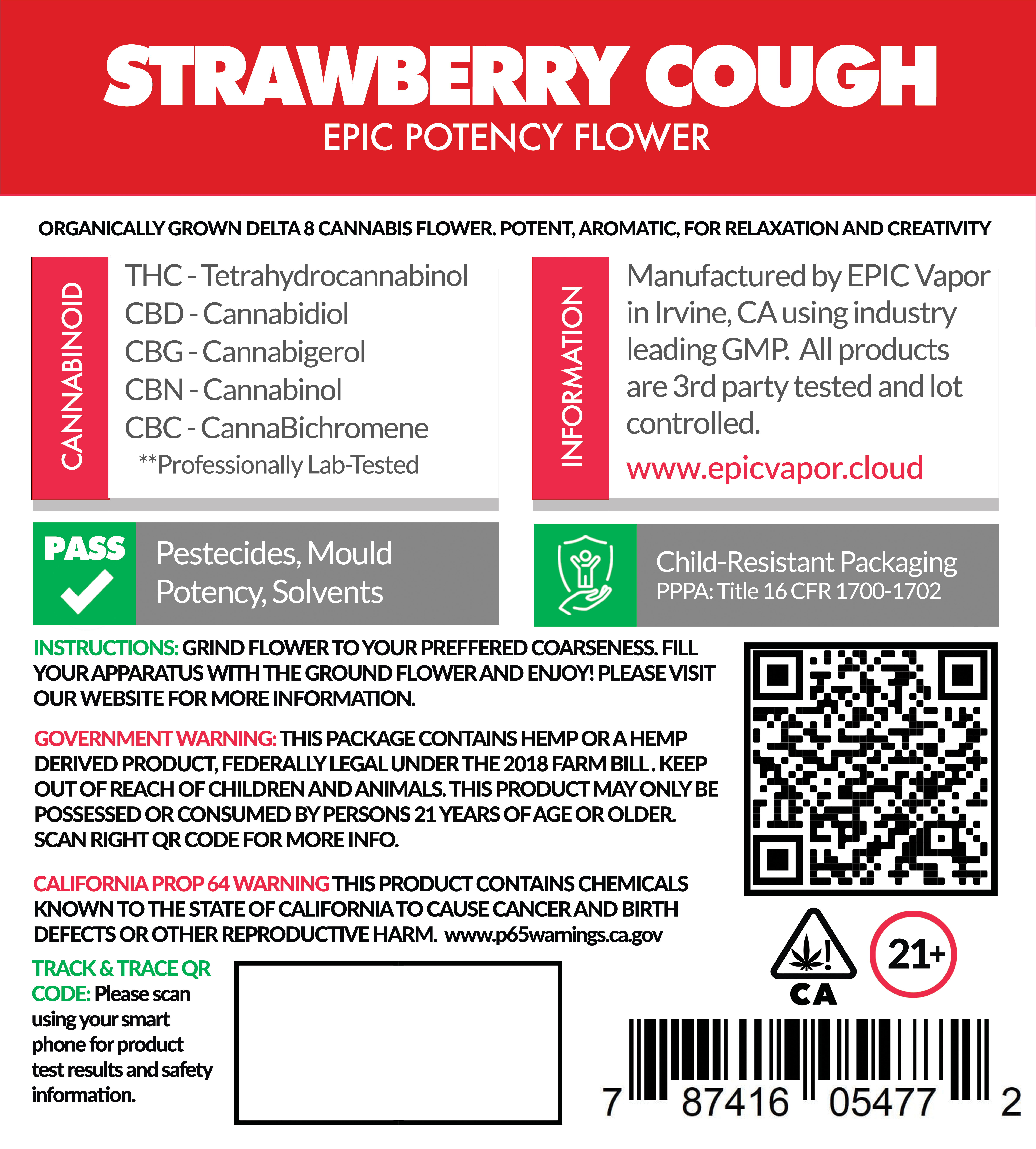Our flower is made through a multi-step infusion process. Step one is to select premium flowers. Once these are selected, it is time to coat them with infused distillate oil. This process often involves multiple coats on the flower to increase psychoactivity and provide an overall frostier look. Packaged to maintain freshness using an 8 layer patented pouch package with a ziplock mechanism. Which further serves as a child proof package with California state compliance labelling. You can be certain that when you buy an EPIC flower, you are getting the absolute best product available in the world. We take tremendous pride in says as much. After all our brand is EPIC, which means the flower has to be EPIC.