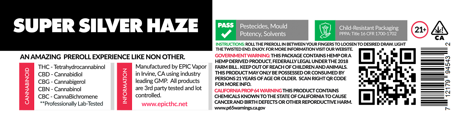 THC PREROLL" /> SUPER SILVER HAZETHC PREROLL | EPIC