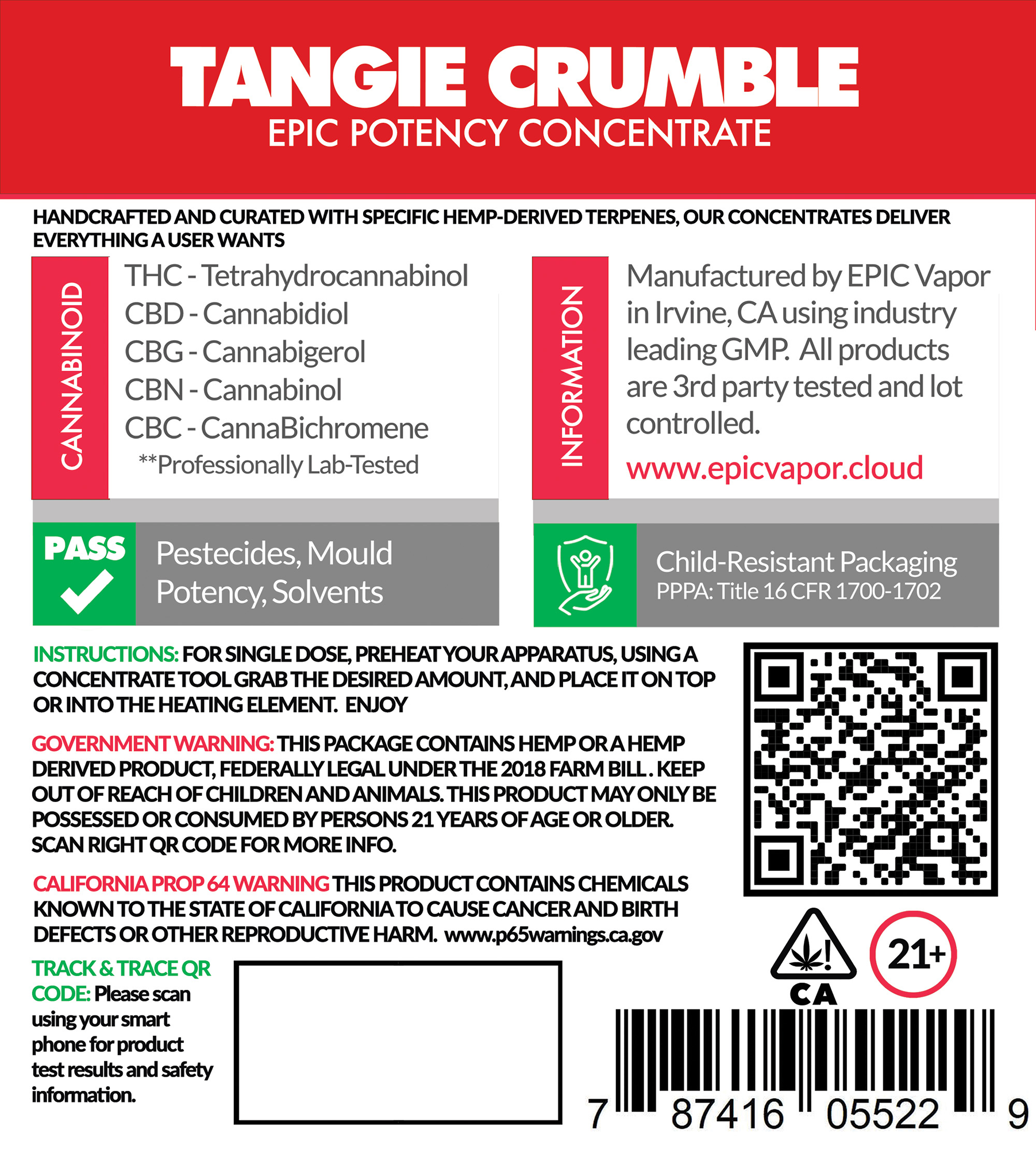Our concentrates are made from the purest full spectrum distillate. These powerfully relaxing concentrates are made with 500 mg of concentrated THC. This means for every 1 mL of oil, you’re getting just over 15 mg of pure THC. Very well packaged to maintain freshness. Which further serves as a child proof package with California state compliance labelling. You can be certain that when you buy an EPIC tincture, you are getting the absolute best product available in the world. We take tremendous pride in says as much. After all our brand is EPIC, which means the tincture has to be EPIC.