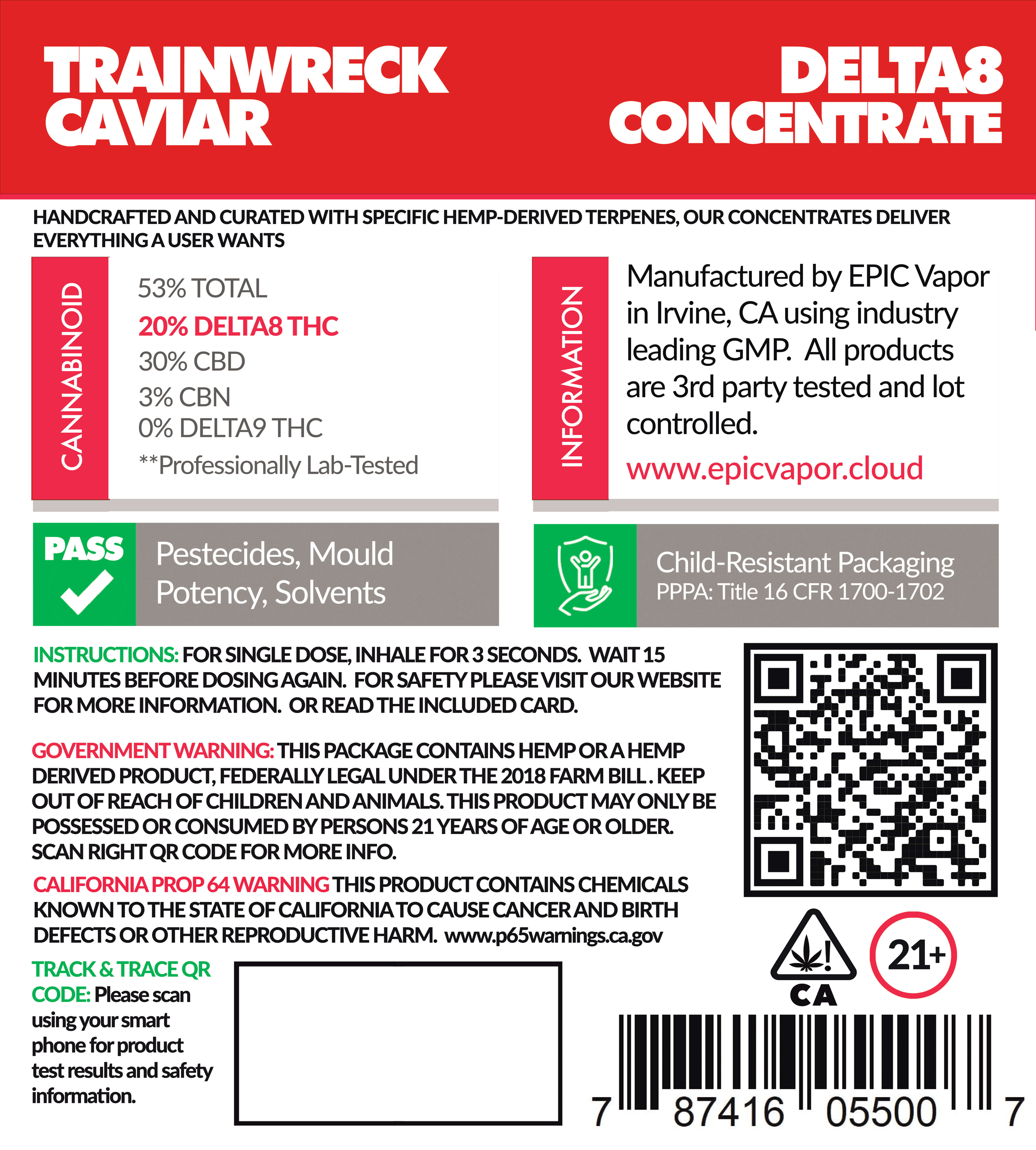 Our concentrates are made from the purest full spectrum distillate. These powerfully relaxing concentrates are made with 500 mg of concentrated THC. This means for every 1 mL of oil, you’re getting just over 15 mg of pure THC. Very well packaged to maintain freshness. Which further serves as a child proof package with California state compliance labelling. You can be certain that when you buy an EPIC tincture, you are getting the absolute best product available in the world. We take tremendous pride in says as much. After all our brand is EPIC, which means the tincture has to be EPIC.